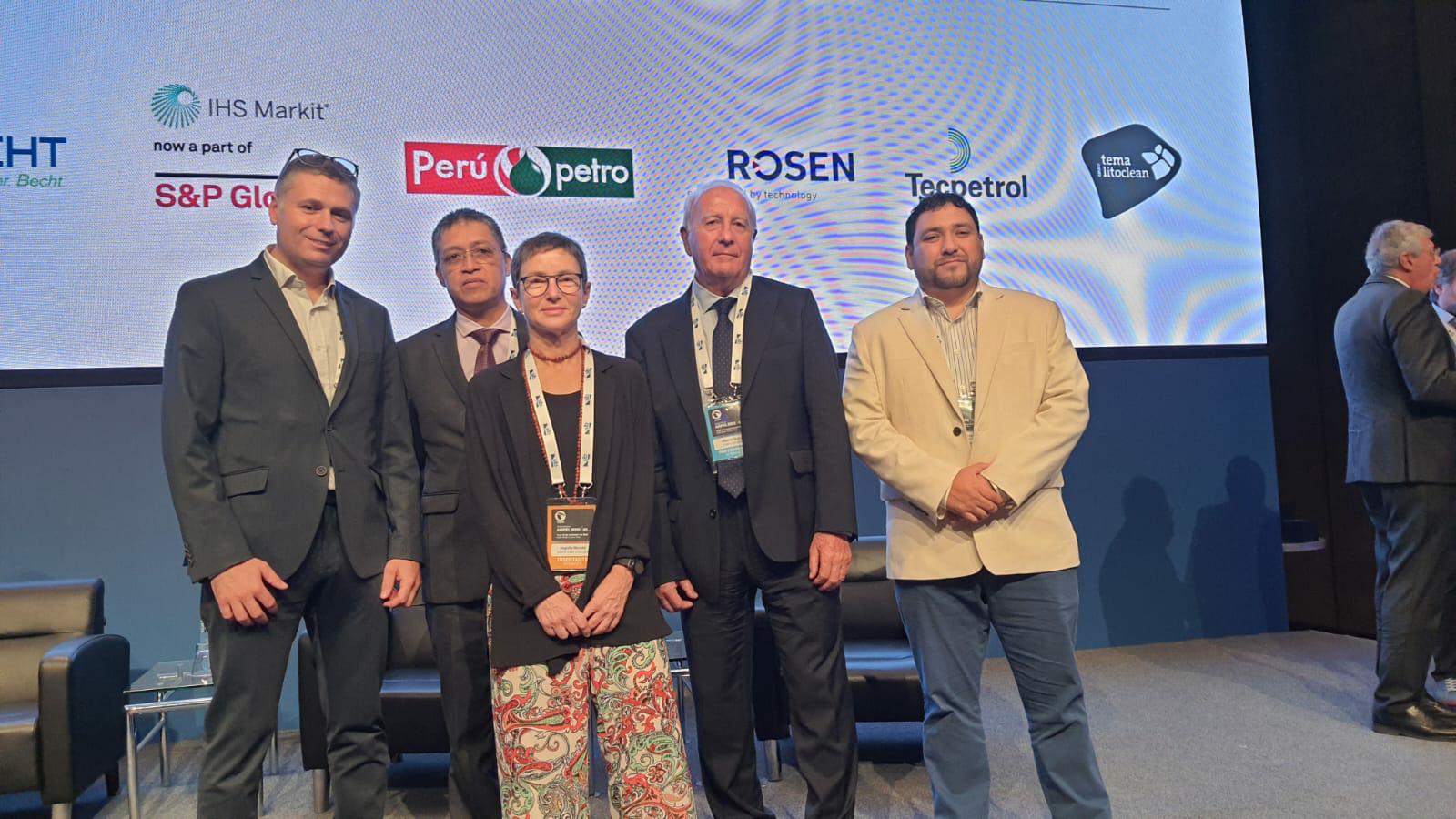 Begoña Mundó también fue la encargada de moderar la mesa sobre la integración de la sostenibilidad a la gestión corporativa, compuesta por Sandra Martínez, gerente corporativa de Responsabilidad Social de Pluspetrol; Mónica Tangarife, profesional sénior de Asuntos Corporativos de Ecopetrol; Bruno Valdez, presidente del Comité de Asuntos Ambientales, Sociales y de Seguridad de Hidrocarburos de SNMPE; María Elvira Calero Leyva, especialista en Derechos Humanos de GeoPark, y Renata Nascimento Szczerbacki, gerente de Planificación en Responsabilidad Social y Derechos Humanos de Petrobras.