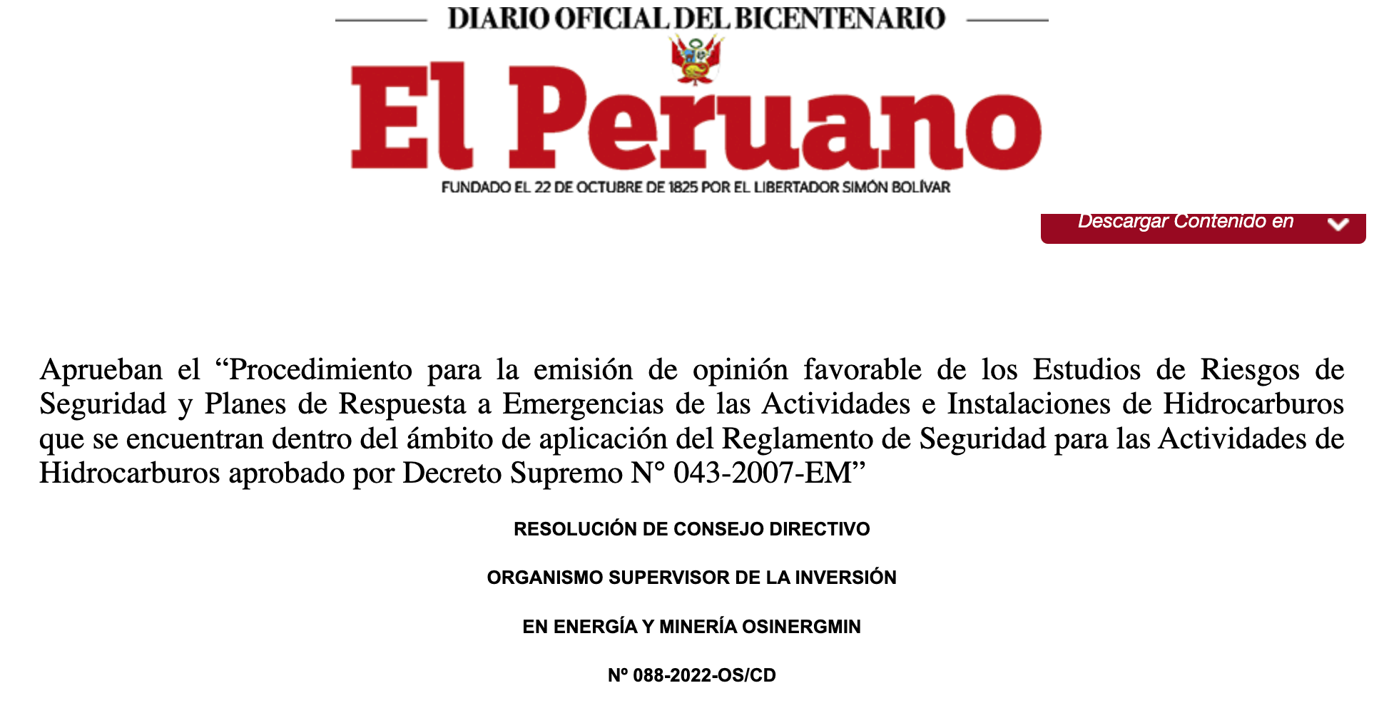 Publicado el procedimiento que regula la emisión de la opinión favorable de los instrumentos de gestión de seguridad